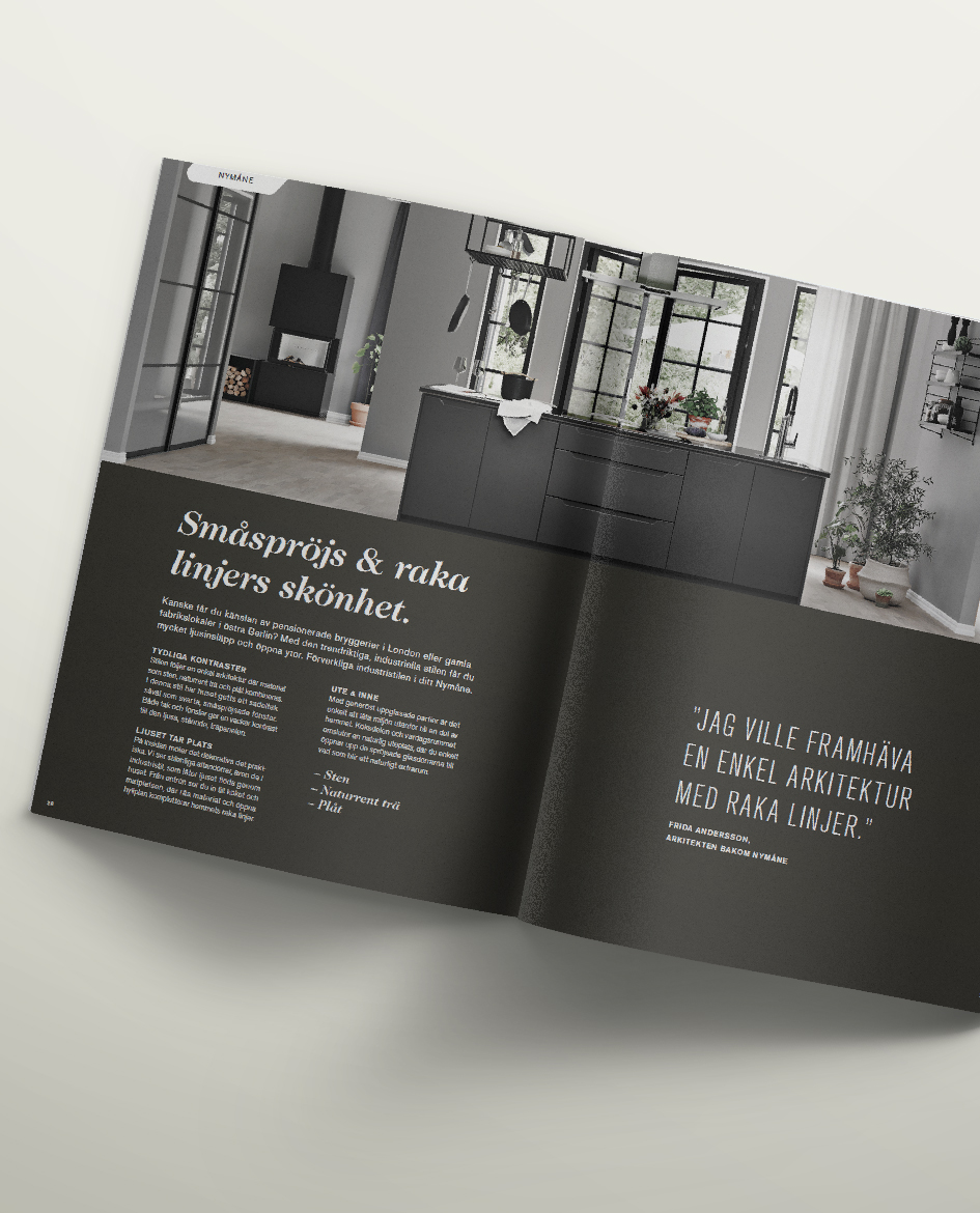 Det händer mycket på ett år. För Myresjöhus innebär det bland annat nya husmodeller, en ny namnstrategi för husmodellerna och en helt ny utgångsstandard för kunden. Vi fick möjligheten att förnya helhetskonceptet och paketera det på ett sätt som både sticker ut och passar perfekt in i tiden.