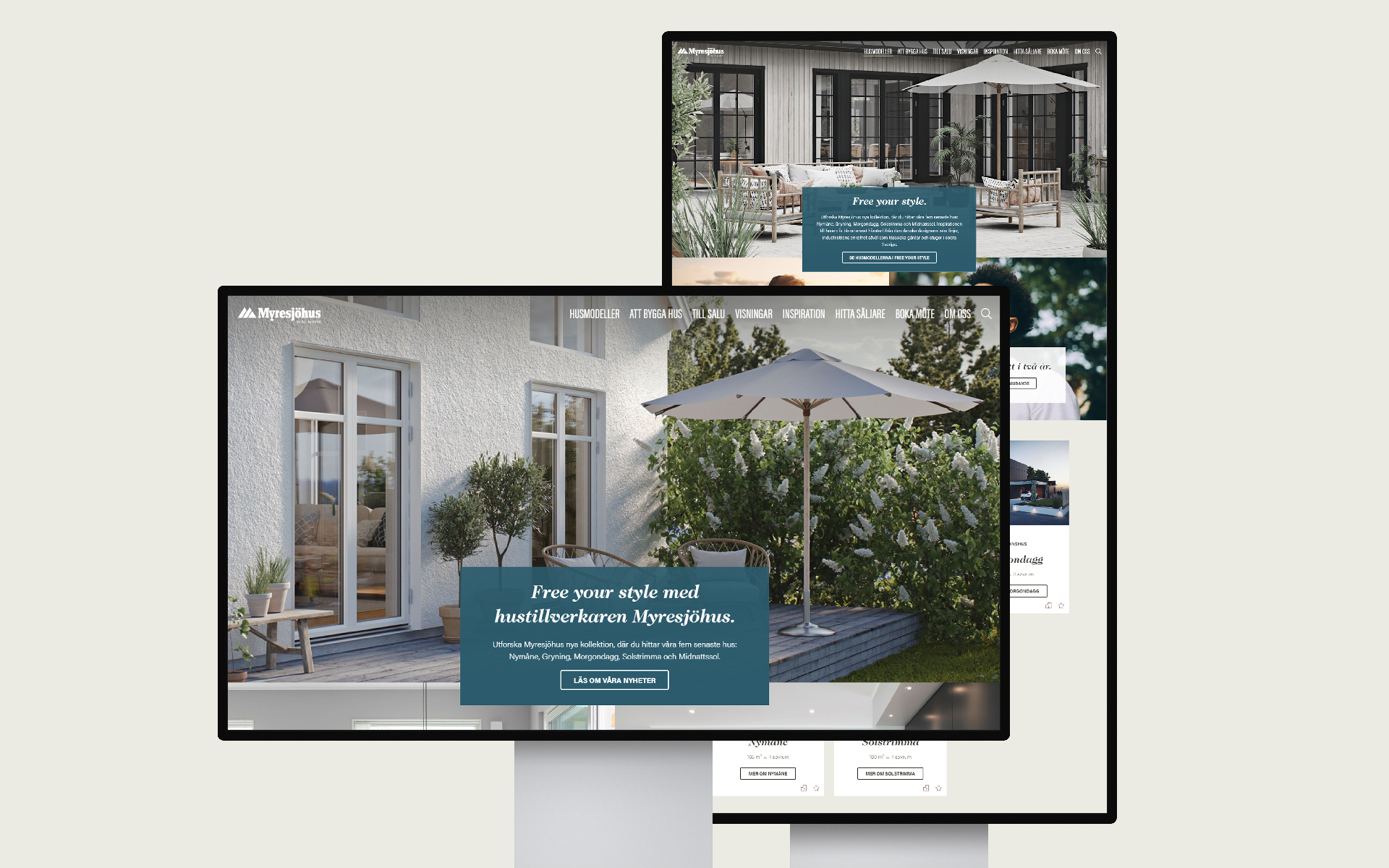 Vi tog fram Free Your Style, ett nytt visuellt koncept för Myresjöhus tre befintliga inredningsstilar: Tradition, Modern och Industriell. Genom att fokusera på kundens personliga stil och låta det skandinaviska inspirera i bildval, ton och design kunde vi skapa en modern och konsekvent känsla som stämmer väl in med det övergripande konceptet.